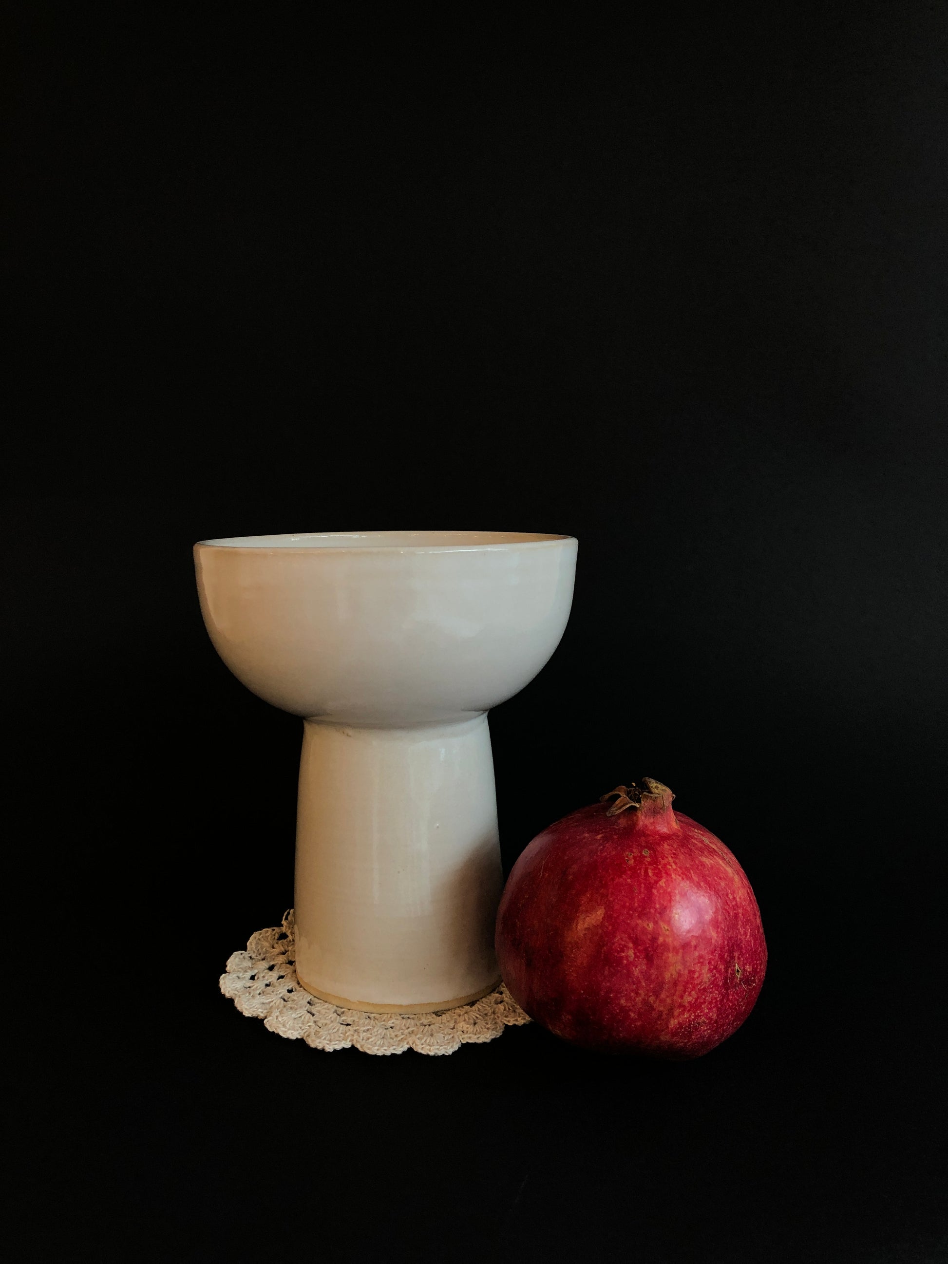 Elegante kom op hoge voet. Mooi als decoratie, fruitschaal, snoepkom, ....